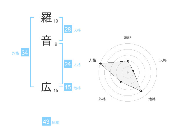 羅音 広さんの総格は43画の2点!