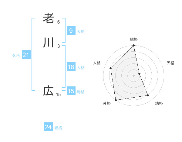 老川 広さんの総格は24画の5点!