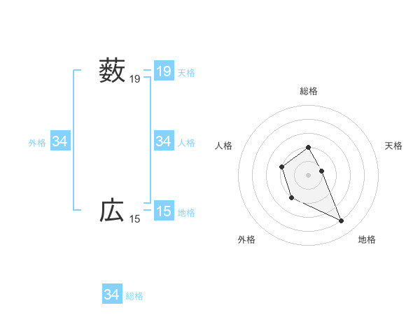 薮 広さんの地格は15画の4点!