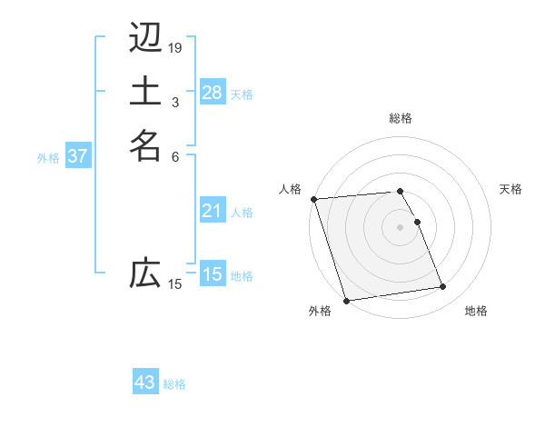 辺土名 広さんの外格は37画の5点!