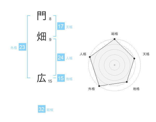 門畑 広さんの総格は32画の5点!