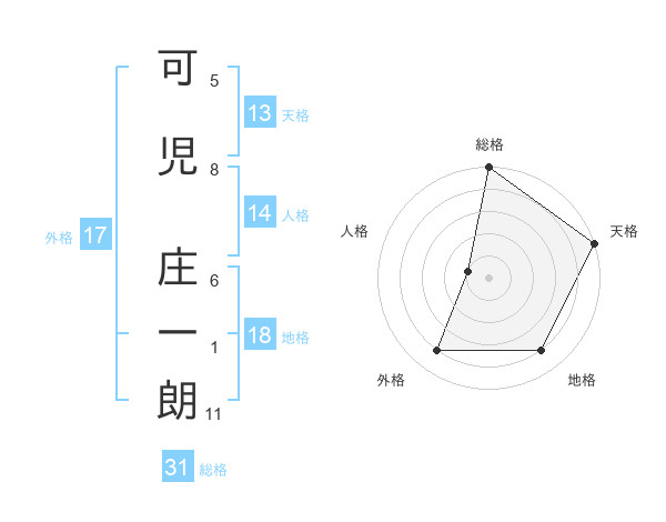 可児 庄一朗さんの総格は31画の5点!