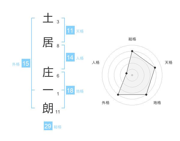 土居 庄一朗さんを姓名の画数から五運を鑑定