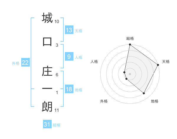 城口 庄一朗さんを姓名の画数から五運を鑑定