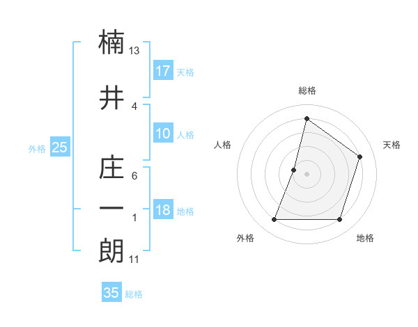 楠井 庄一朗さんの総格は35画の4点!