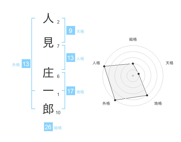 人見 庄一郎さんを姓名の画数から五運を鑑定