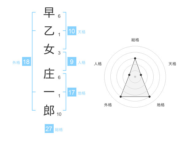 早乙女 庄一郎さんの総格は27画の3点