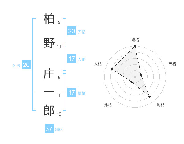 柏野 庄一郎さんの総格は37画の5点!