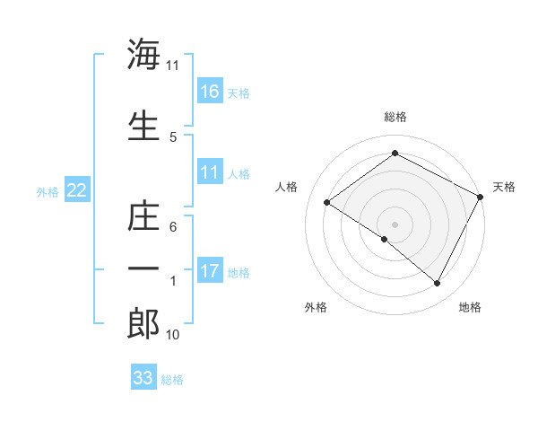 海生 庄一郎さんを姓名の画数から五運を鑑定