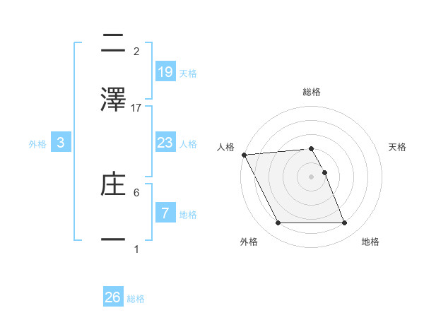 二澤 庄一さんを姓名の画数から五運を鑑定