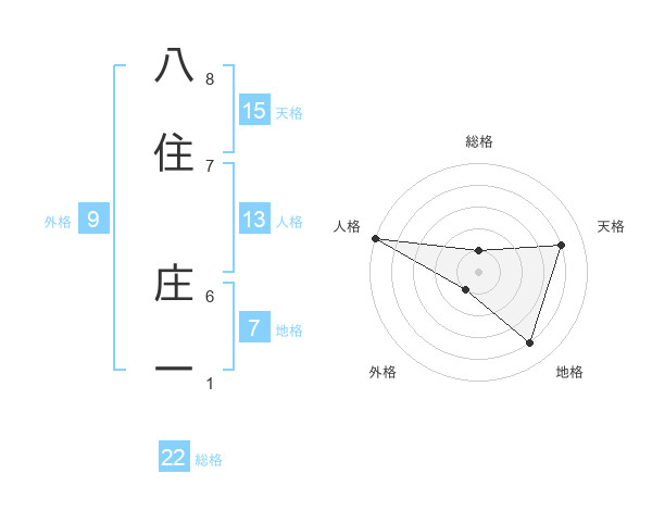 八住 庄一さんの総格は22画の1点!