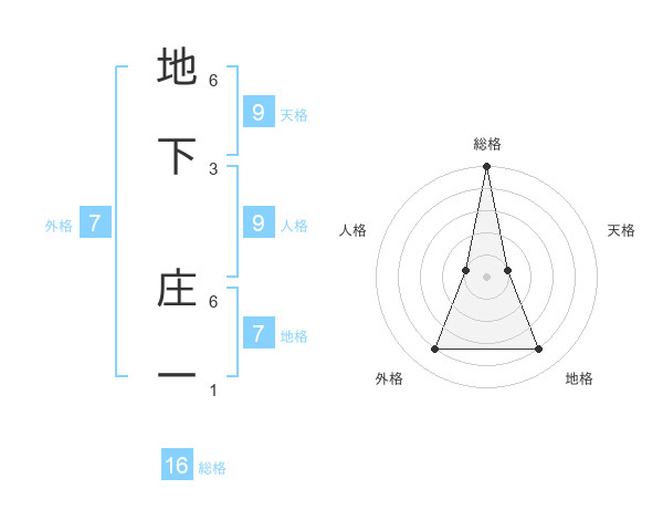 地下 庄一さんの総格は16画の5点!