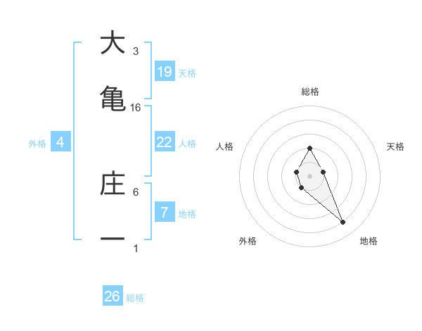 大亀 庄一さんの総格は26画の2点!