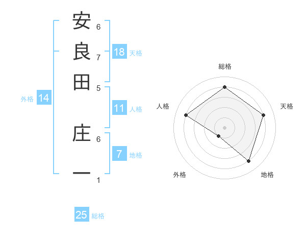 安良田 庄一さんを姓名の画数から五運を鑑定
