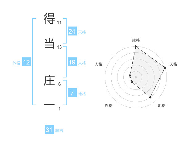 得当 庄一さんの総格は31画の5点!