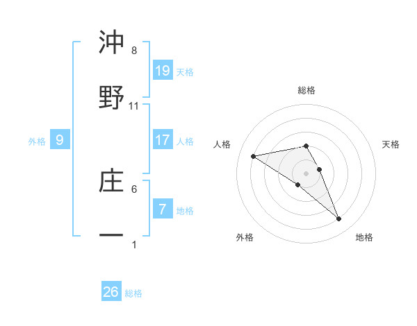 沖野 庄一さんを姓名の画数から五運を鑑定