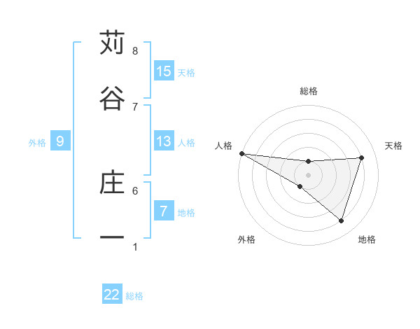 苅谷 庄一さんの総格は22画の1点!