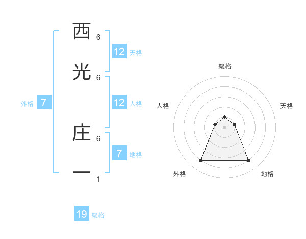 西光 庄一さんの総格は19画の1点!
