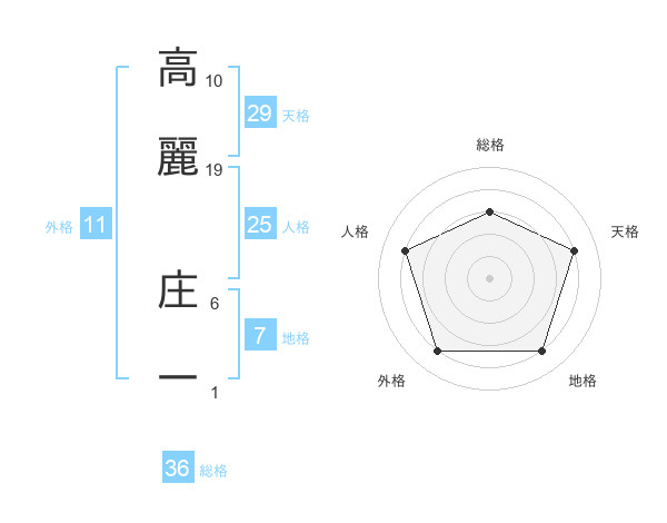 高麗 庄一さんを姓名の画数から五運を鑑定