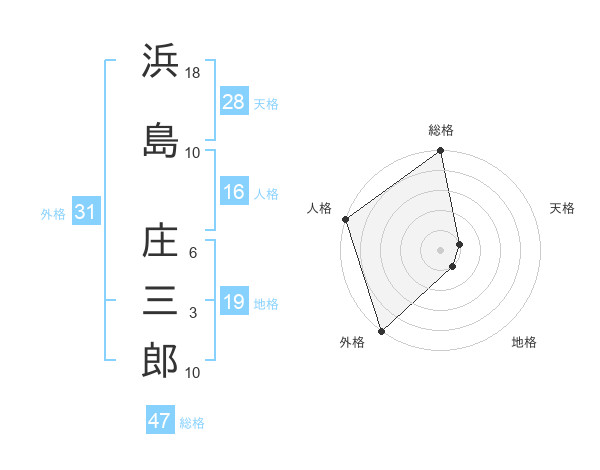 浜島 庄三郎さんを姓名の画数から五運を鑑定