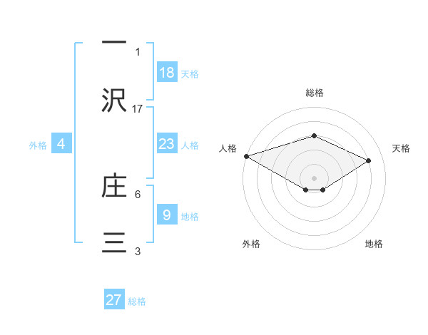 一沢 庄三さんの総格は27画の3点!