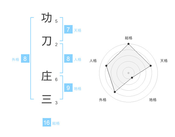 功刀 庄三さんの総格は16画の5点!