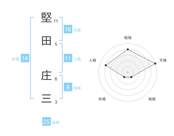 堅田 庄三さんの総格は25画の4点!