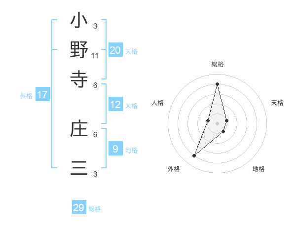 小野寺 庄三さんの総格は29画の4点!
