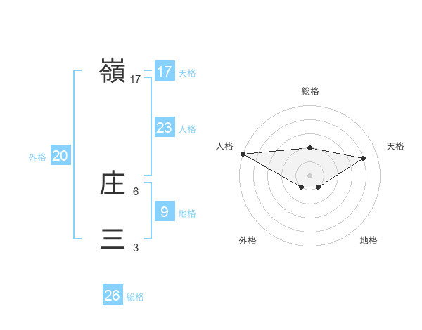 嶺 庄三さんの総格は26画の2点!