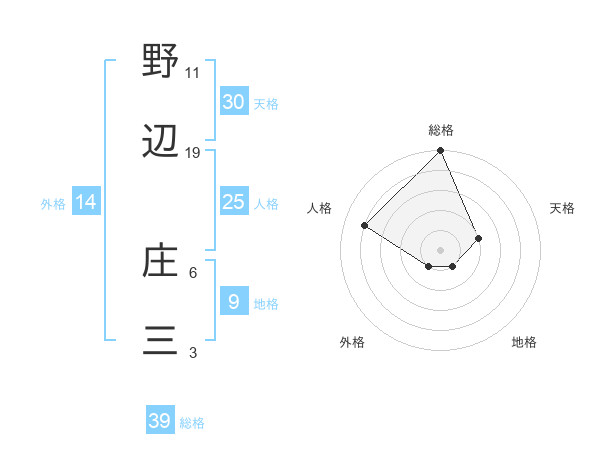 野辺 庄三さんを姓名の画数から五運を鑑定