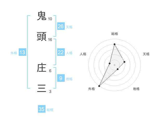 鬼頭 庄三さんを姓名の画数から五運を鑑定