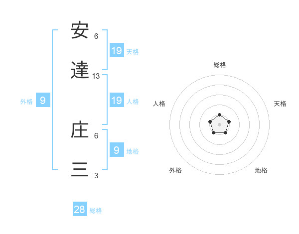 安達 庄三さんの総格は28画の1点!