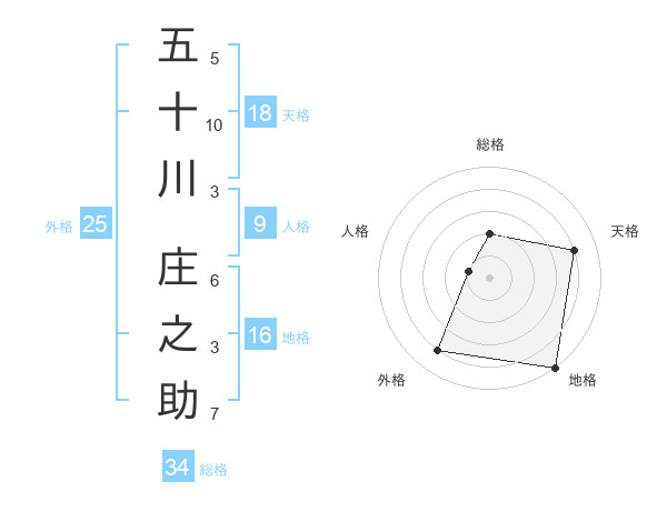 五十川 庄之助さんを姓名の画数から五運を鑑定