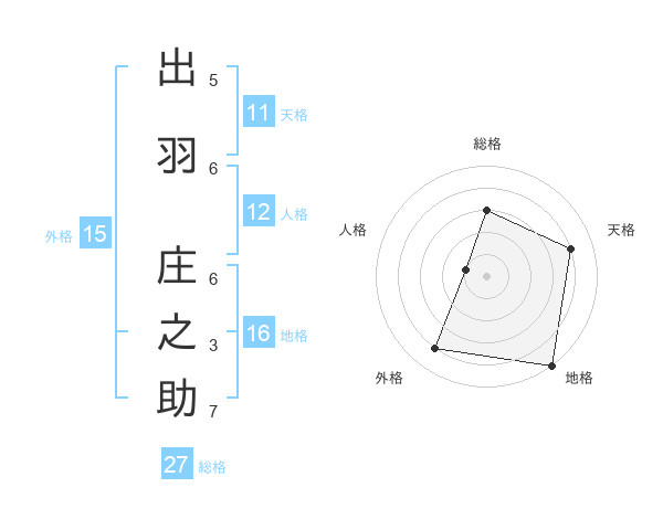 出羽 庄之助さんを姓名の画数から五運を鑑定