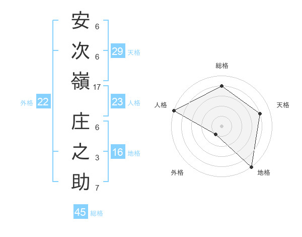 安次嶺 庄之助さんを姓名の画数から五運を鑑定