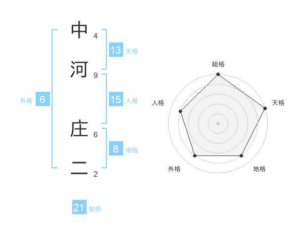 中河 庄二さんの総格は21画の5点!