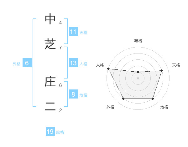 中芝 庄二さんの人格は13画の5点!