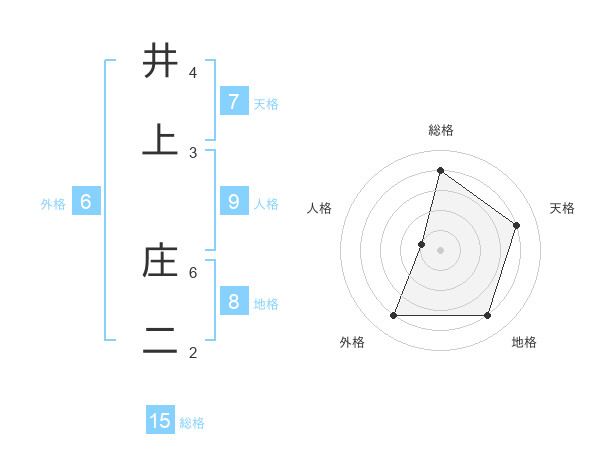 井上 庄二さんの総格は15画の4点!