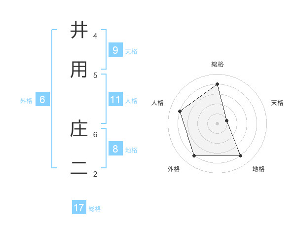井用 庄二さんの総格は17画の4点!