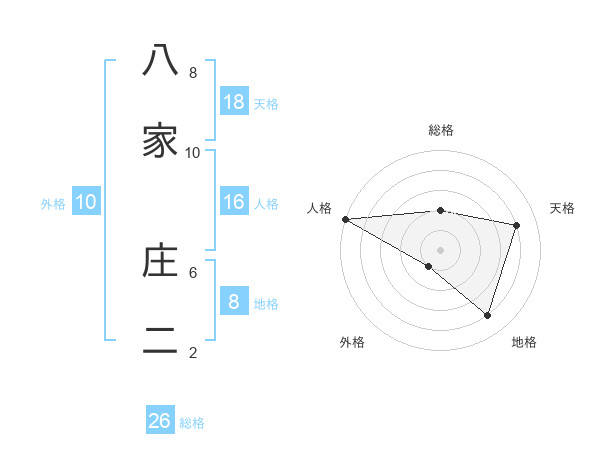 八家 庄二さんの総格は26画の2点!