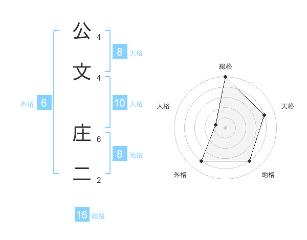 公文 庄二さんの総格は16画の5点!