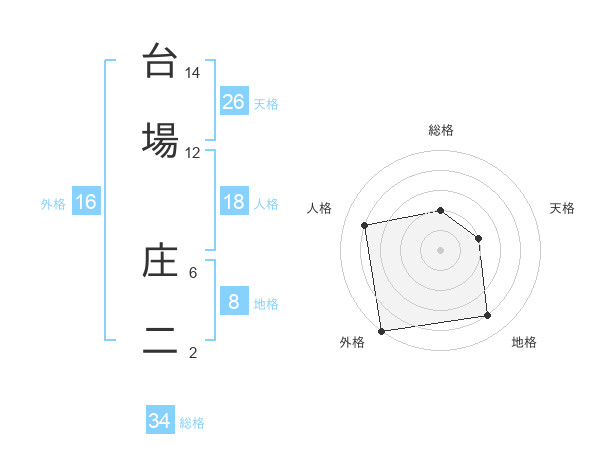 台場 庄二さんの総格は34画の2点!