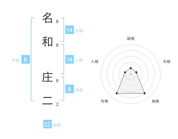 名和 庄二さんの地格は8画の4点!