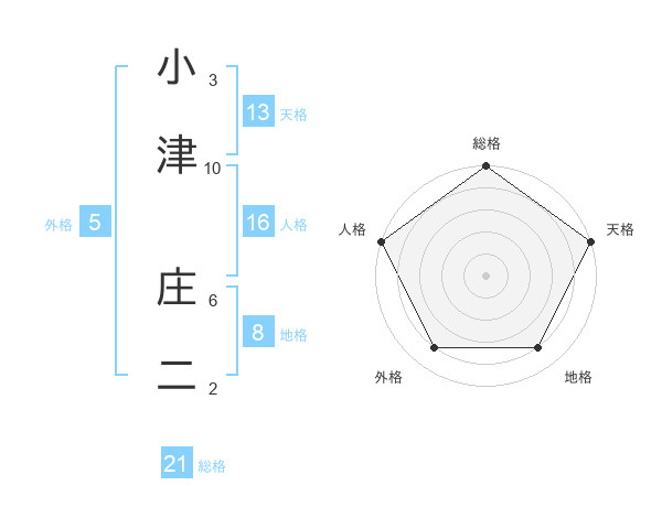 小津 庄二さんの総格は21画の5点!