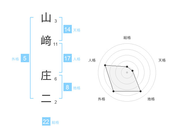 山﨑 庄二さんの総格は22画の1点!