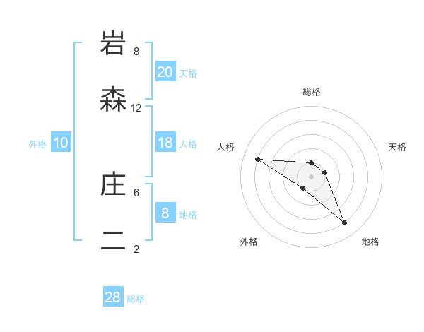 岩森 庄二さんを姓名の画数から五運を鑑定