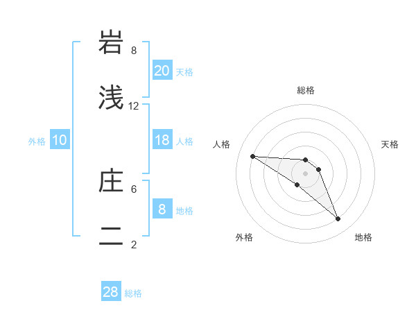 岩浅 庄二さんの地格は8画の4点!