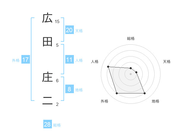 広田 庄二さんの総格は28画の1点!