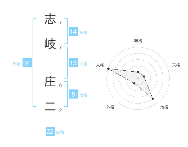 志岐 庄二さんの総格は22画の1点!