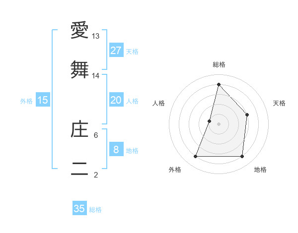 愛舞 庄二さんの総格は35画の4点!